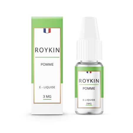 Le e-liquide Pomme  de Roykin propose une saveur juteuse et sucrée. Ce merveilleux goût de pomme est proche de celui de la Reinette. Excellente pomme à couteau, sa chair de couleur blanche-crème renferme des saveurs subtiles et délicates. Douce, acidulée et parfumée, la Reinette saura charmer les curieux.