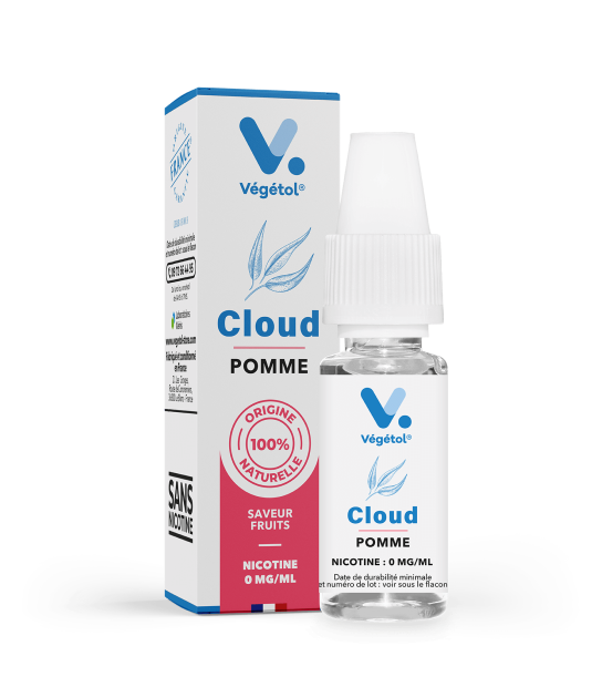 Avec Cloud Pomme, vous aurez l’impression de vous balader dans les nuages… mais avec une petite surprise en sus. Des parfums de pomme mûre, gourmande à souhait et parfaitement restituée vous y attendent. Alors, comment résister à ces saveurs peu sucrées, douces et parfaitement dosées ? Surtout lorsqu’on sait que cet e-liquide Végétol est uniquement composé de végétol, de glycérine végétale et d’arômes alimentaires.