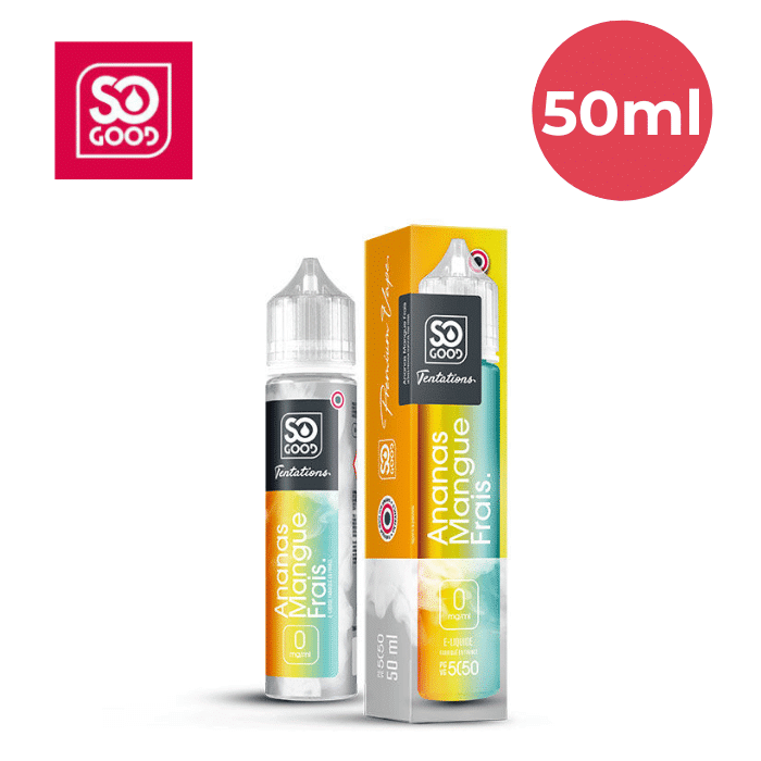 L’E-liquide So Good Ananas Mangue Frais est formulé avec 50% de propylène glycol et 50% de glycérine végétale, offrant un équilibre idéal pour une excellente production de vapeur et une saveur intense.